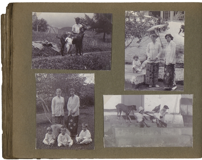 Theeonderneming Dajeuh Manggoeng, met Erna van Polanen Petel, haar zonen Eddy, Ernest en rechtsonder ook haar dochter Anne (‘Zus’)