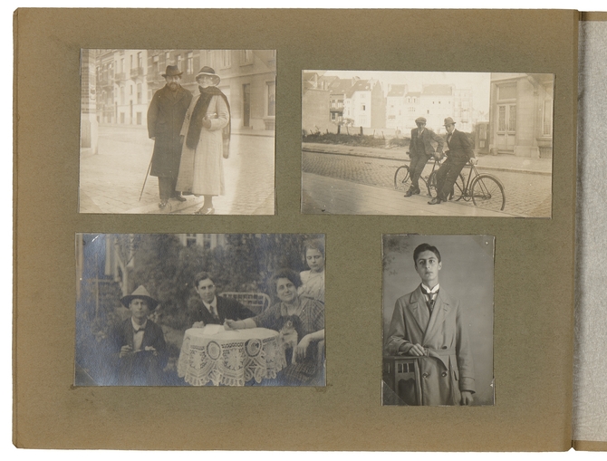 ![]() Rechtsboven: E. du Perron en onbekende vriend Linksonder: v.l.n.r. Jan Derk Koch, Johan Anthon Koch, moeder van Jan Derk en Johan Anthon Koch, Theodora Henriette Koch (op achterzijde: Frankenslag, Den Haag Oct. ’21) Rechtsonder: Johan Anthon Koch (op achterzijde: Anton Koch) |
