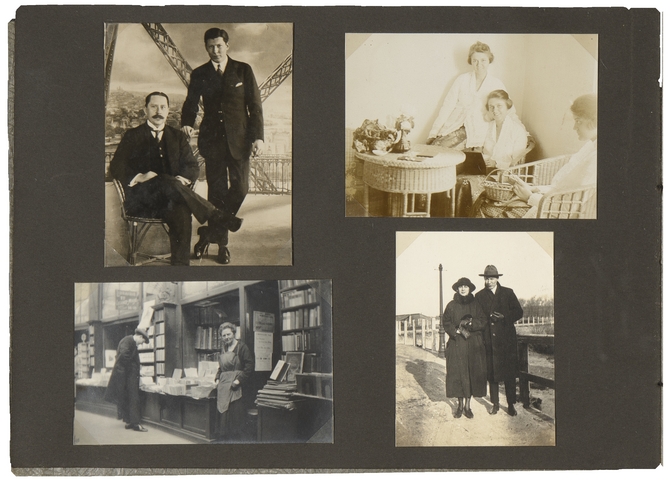 ![]() Linksboven: Ferdy de Grave (staand) Linksonder: E. du Perron bij een boekenstalletje, mogelijk met Sophie Leclercq-Moens in de Sint-Hubertusgalerijen te Brussel, (op achterzijde: April ’24) Rechtsonder: Ferdy de Grave en zijn vrouw Anna Geertruida Terwogt |