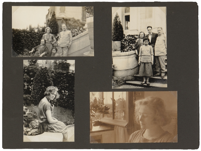 Rechtsboven: E. du Perron met zijn ouders en Ina, (op achterzijde: Juli ’24)