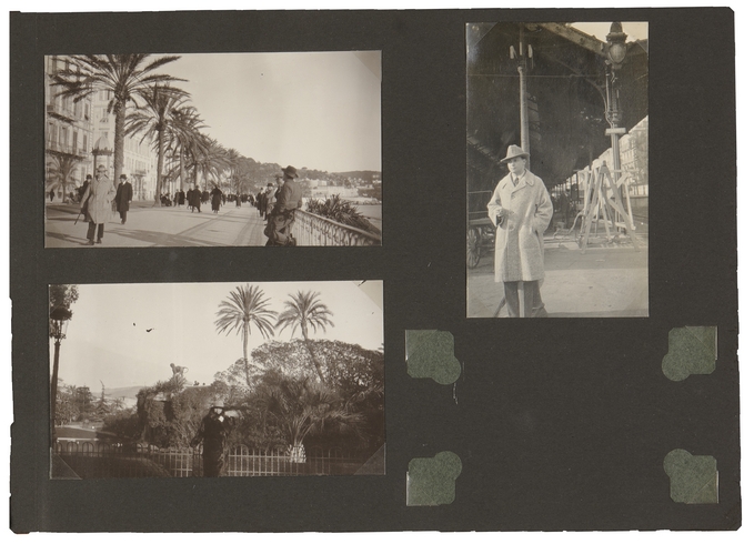 ![]() Linksboven: geheel vooraan E. du Perron, quai des Etats-Unis, Nice. [uit een brief aan Eveline Blackett:] “A Nice, au quai des Etats-Unis; (c’est la suite de la Promenade des Anglais!) C’était ma période Barnabooth – il faut absolument que vous lisiez ce livre-là!” Linksonder : Ninon de Smrecsányi in Nice Rechts: E. du Perron, (op achterzijde: Cannes) |