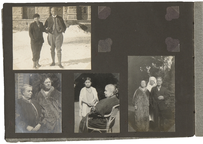 ![]() Linksboven: (op achterzijde: St. Moritz 28 febr. 1926/ Hier heb je het st[…]/ zoals zij van goed’/ natuur loop te ge[…]//Dag!) Linksonder: Madeline du Perron en ‘tante Henny’ (Toetie Henny-du Perron) Midden onder: Tante Henny en Ina (Bettina Koch, het pleegkind van de heer en mevrouw Du Perron) Rechtsonder: Charles en Madeline du Perron met een verpleegster in het sanatorium, waar Du Perron sr. was opgenomen, september 1925, (op achterzijde: Bad Wärishofen, Ginneken Breda) |