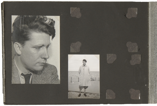 ![]() Hendrik Marsman Links: foto door Henri-Grèce, Bruxelles (op achterzijde in handschrift Hendrik Marsman: Ligt tusschen dezen/ dooien diender en/ gindsche looze guit,/ misschien, in ’t midden,/ ’s mansch werkelijke snuit?) ‘gindsche looze guit’ slaat op een tweede foto van Marsman, genomen in hetzelfde atelier, zie album 7, blad 5 |