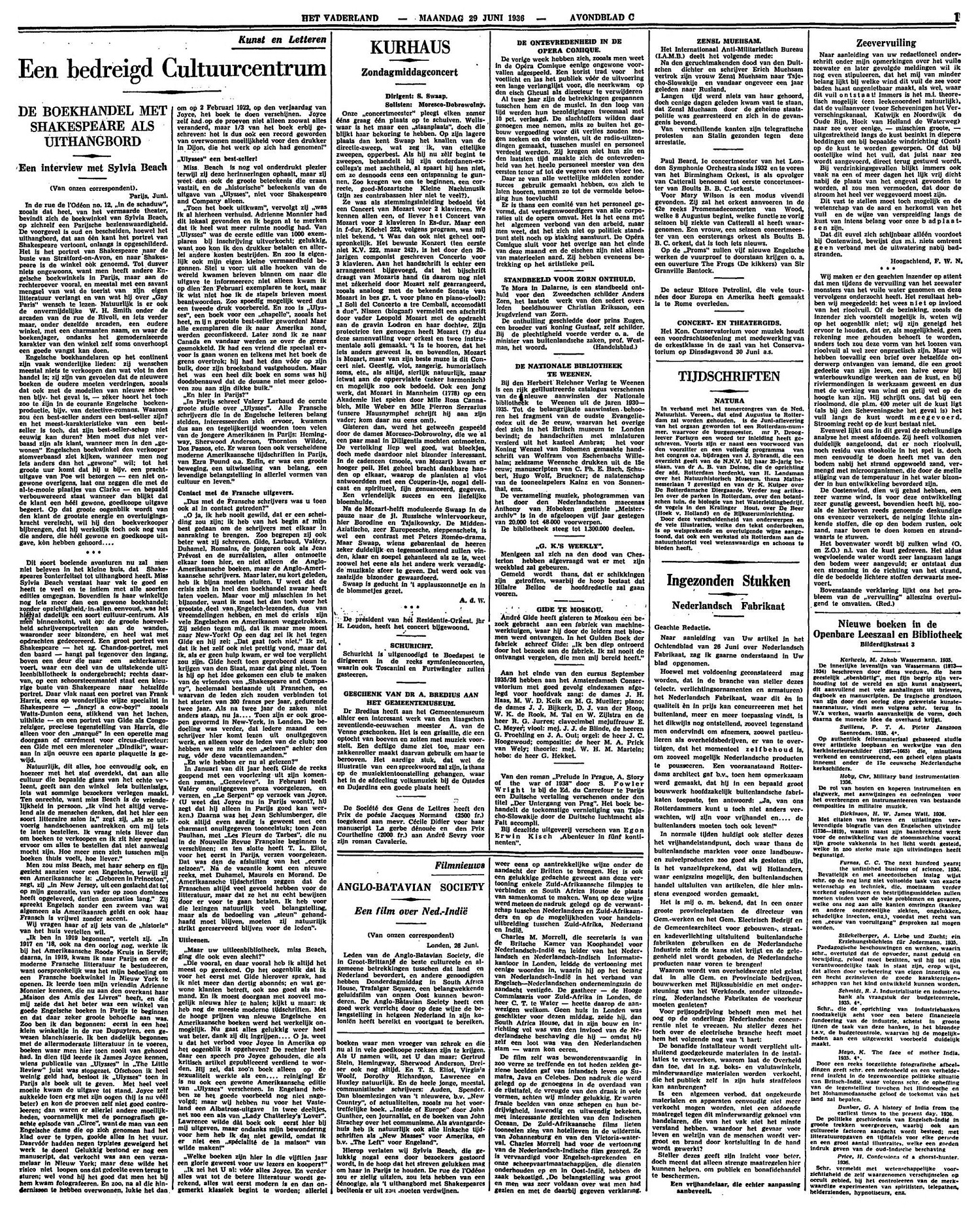 Een bedreigd cultuurcentrum. Interview met Sylvia Beach te Parijs. [Niet ondertekend] LXVIII