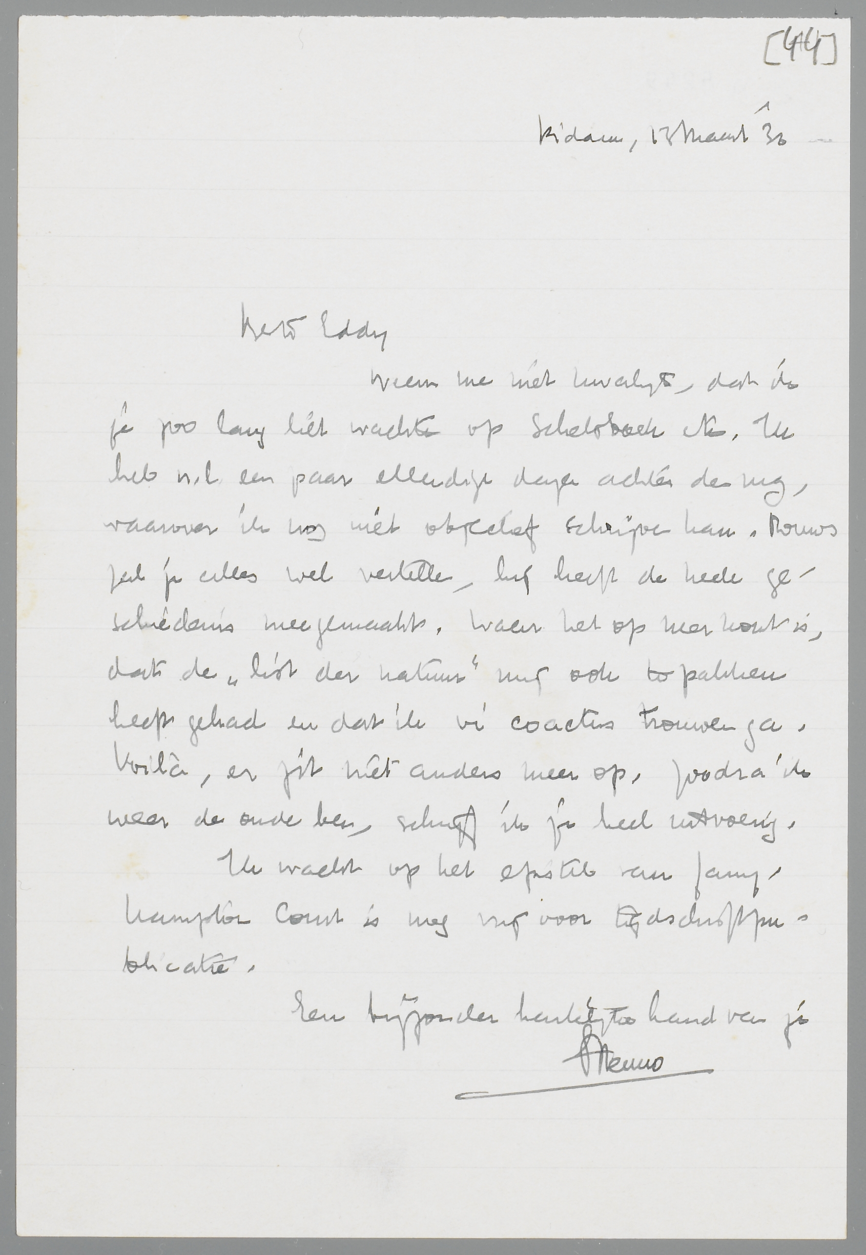 Neem me niet kwalijk, dat ik je zoo lang liet wachten op Schetsboek etc. Ik heb n.l. een paar ellendige dagen achter den rug, waarover ik nog niet objectief schrijven kan.