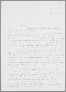 Maandag at Vestdijk hier. Buitengewoon gezellig en naar wensch. Ik had het genoegen hem een étude van Chopin te hooren voordragen op mijn klavier. Het frappeerde me, dat het een vreemd gezicht is, een fatsoenlijk man aan een piano te zien zitten, en zien ijveren met zijn vingertoppen. Hij speelde overigens niet slecht, onzen Simon.