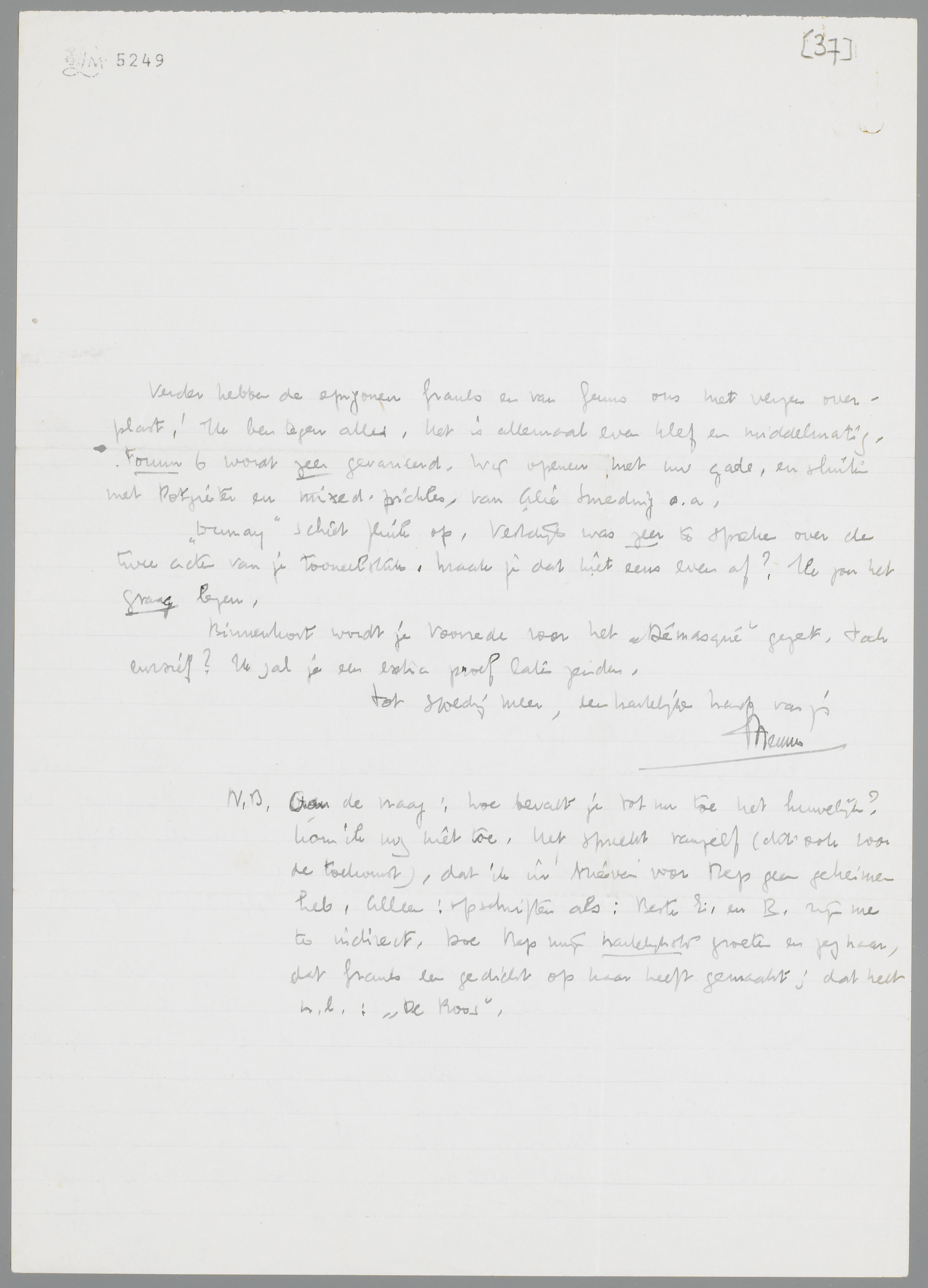 N.B. Aan de vraag: hoe bevalt je tot nu toe het huwelijk! kom ik nog niet toe. Het spreekt vanzelf (dit ook voor de toekomst), dat ik in brieven voor Bep geen geheimen heb. Alleen: opschriften als: Beste E. en B. zijn me te indirect. Doe Bep mijn hartelijkste groeten en zeg haar, dat Grauls een gedicht op haar heeft gemaakt; dat heet n.l.: ‘De Roos’.