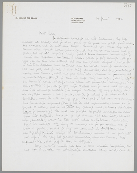 Van objectiviteit gesproken: ik heb bijna een groot stuk af over het ‘beschrijven’; het gaat over Querido, Feuchtwanger, Nijhoff, Lawrence, Malraux en nog een paar menschen. Mijn conclusies over de erotiek zullen de jouwe wel grappig aanvullen, denk ik. Erfolg is heel erg. De kreupele adjectieven alleen al, waarvan elke pagina krioelt. - Zoodra het stuk af is, stuur ik je de copie.