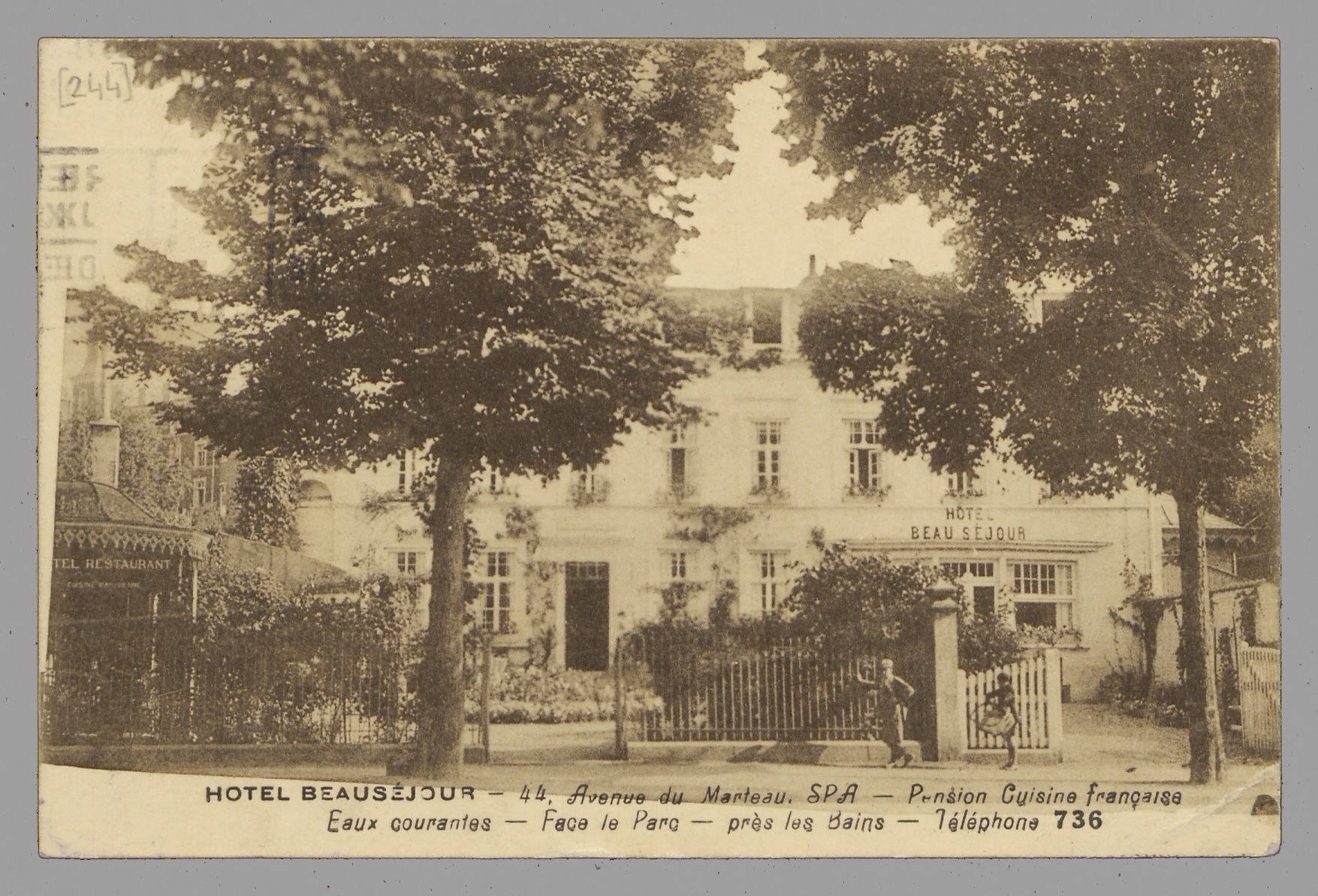 Ziehier! - Wij zijn niet meer nr Nassogne gegaan, we waren ziek van dat landschap. We zitten nu in Spa, in het hotel Z.O.Z. Je moet tot Luik gaan, misschien is er zelfs wel een directe trein tot Spa. Het hotel is erg aardig, en kost met pensionprijs mee 50 frs (= ± fl. 3.50 per dag). Telegrafeer dus wanneer je komt; wij zitten hier zeker wel een week. Je kan komen wanneer je maar wilt. Hart. groeten, je