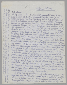 Je brief was erg gezellig en vol wetenswaardigheden. Het stuk van den Bulgaarschen naaktlooper is echter nog niet verschenen, ik bedoel: van den Balkaneeschen zwerver oftewel Provençaalschen druivenplukker; dat het bête zal zijn, wil ik met gerust gemoed hopen. En de inderdaad ‘Polderlandsche’ - immers van alle ‘buitenlandsche’ belezenheid gespeende - ontdekking van Donker is ook karakteristiek. Het doet er niet toe dat ik De Stronk eerst 1/2 jaar geleden las, in hetzelfde boekje dat jij nu bezit, ik ben een epigoon van P.v.O., zooals Apollinaire dat was van Stramm, of Aragon van Kurt Schwitters! Heeft Vic die opmerking geschrapt uit welwillendheid tegenover mij, of uit verzet tegen de domheid tout court? Ik vind het aardig van hem, maar hoop op het laatste. Erg aardig is ook dat hij jou Ter zake overleverde, en jammer (ook buiten de Forum-politiek, die tenslotte natuurlijk bestaat, omdat men niet strijden kan, als partij aanvallen of aangevallen worden, zonder dat er tòch een soort ‘politiek programma’ gaat ontstaan) - en jammer, dat jij het niet besprak. De lezers van de N.R.C., die buiten alle literaire politiek staan en voor wie iedere kritikus: jij of Donker of ik, de fameuze ‘ze’ zijn, die recensies plegen, zouden dan hebben kunnen lezen wat ‘ze’ over den man zeggen, die de ‘ze-’rol zoo vaak en met zoo'n zuiver begrip in hun krant voor ze speelt. Kan je het niet toch nog doen, en dan meteen een zuivere analyse geven (zonder gescheld) van die Donkersloot-intelligentie-met-matelooze-belangstelling-en-joviale-Olympismen? Het zou uitstekend zijn, en het kost je geen handomdraaien; uitstekend, niet voor de Forum-getrouwen, maar voor wat jij het ‘halfzachte Holland’ noemt en voor deszelfs ‘publieke opinie’. Òf je strijdt deze strijd niet meer, en dan heb je gelijk - òf je laat je hier een eersterangszet ontgaan!