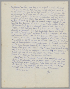 Het spijt me erg dat dat stuk nog altijd niet hier is; ik brand nu van verlangen om het in zijn geheel te bestudeeren. De consequenties die jij eens aan de polemiek wilde geven, schijnen dus van de andere zijde te worden gezocht; wat mij benieuwt is alleen of de heer Coster zijn bravo's met plaatsruimte in de Stem betaalt, of in species, zooals vroeger placht te gebeuren. (Ik zou zooiets ook wel in mijn stukje willen vragen.) Weliswaar heeft hij mij destijds gesommeerd ‘het mes’ te trekken, maar het ging toen nog maar om een essay-mes; terwijl de dapperen uit het Costerlijke kamp nu met ‘physieke afstraffingen’ schijnen te willen reageeren. De bleeke boekenwurm Theun was in dit opzicht nauwelijks au sérieux te nemen, maar iemand die Bob Spoelstra heet, van gletschers op muildieren glijdt en van muildieren zoonoodig in één run weer op zwaargeparfumeerde juffrouwen, is heusch een andere zaak: tegen zóóiets gespierds, dat bovendien nog een paar ribben meer heeft dan ieder ander (blijkens gepubliceerde photo's), zal ik mij dienen te wapenen; want onder ons gezegd, ik geloof niet dat ik een pak slaag van dezen meneer, zelfs franco thuis bezorgd, zou kunnen verdragen.