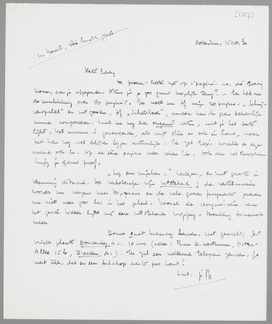 Bouws gaat Maandag [huwen]. Het gewichtig feit vindt plaats Donderdag a.s. 10 uur (adres: Frau K. Westmann, Ostra-Allee 15b, Dresden A1). Ik zal een wellevend telegram zenden. Je weet toch, dat er een bisschop aan te pas komt?
