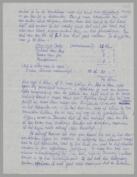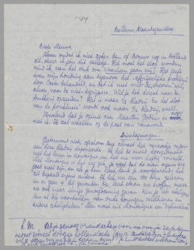 Alweer omdat ik niet zeker ben of Bouws nog in Holland zit, stuur ik jou dit velletje. Het moet het slot worden, vind ik, van het stuk over Waarheen gaan Wij? Het geeft éven mijn houding aan tegenover het ‘afgrijselijke probleem’ door Coster behandeld, en dat ik niet mee - be‘sneeren’ wil, alweer, voor de niet-begrijpers. Wil je het direct naar de drukkerij opzenden? Het is maar 1/2 bladzij. En het slot van de ‘konklusie’ wordt ook maar 1/2 bladzij, wschl.