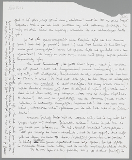 Ik zit te werken aan mijn hoofdstuk over de intelligentie, waarbij ik uitga van de geschiedenis van mijn intelligentie. Dit met een inleiding over de bescheidenheid in de litteratuur. Ik tracht den toon van I te blijven vasthouden. Binnenkort stuit ik ook op de quaestie intelligentie-‘vent’. Ik zal dan een verduidelijking van het ‘ventisme’ moeten geven, waarbij ik Lawrence ook hoop te gebruiken. Ik las n.l. op het leeskabinet de brieven van Lawrence, die erg goed zijn, vooral sympathiek. (uit een brief van L. aan Huxley: ‘Not that I care much whether people are intro or extra or anything else, so long as they're a bit simpatico’). De controverse Lawrence-Huxley komt er goed in uit. Ik heb het boek, hoewel het duur is, gekocht. Verder las ik in Apocalypse, dat te zeer van Nietzsche geleend is om erg indruk op me te maken. Maar Lawrence is zeker iemand, die aardiger is dan hij schrijft. Ook over Lady Chatterley staan in de collectie alleraardigste brieven! - De heele vraag, of Huxley 1e of 2e rangs is, kan een temperamentsquaestie worden. Intelligent is hij zeker, zijn gemis aan ‘ventisme’ moet ik tot op zekere hoogte toegeven. Toch is me het heele probleem nog niet volkomen duidelijk. Ik krijg misschien ineens een ingeving, waardoor ik de verhoudingen beter zie.
