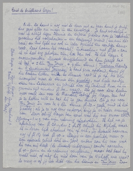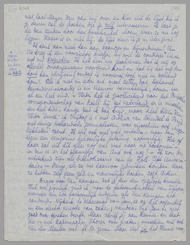 Bravo voor Van Kampen, dat is dus een opgeloste kwestie. Toch wel pijnlijk, vind ik, voor de fatsoensknobbel van Zijlstra, wanneer een zóó fatsoenlijk uitgever als Van Kampen het aandurft. Nijkerk, de ‘Maecenas’ van Jan, is op het oogenblik in een slechte periode van zaken; vandaar dat Jan er niet goed over spreken durft. Maar schrijf jij aan Hennie, en laat die er met Rademacher Schorer over praten; misschien wil ook Van der Meulen wel fl. 50.- geven. Maar stel jij het Hennie voor; dat is beter dan wanneer ik het doe. En schrijf Greshoff dan of hij in ieder geval fl. 50.- van Nijkerk vraagt, dàt zal de man nog wel hebben en geven! Zeg maar dat er haast bij is. - Krijg ik dan spoedig de proeven van Zijlstra?