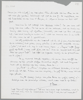 Laat Bep mij gauw schrijven over de door haar ontdekte ‘pernicieuze invloed’ van jou op mij! Welke? In de Zieke? Dit intrigeert me werkelijk zeer, omdat ik me maar al te zeer van dien invloed bewust ben en zelf natuurlijk moeilijk kan uitmaken, waar die heilzaam of ‘pernicieus’ is. - In ieder geval, na het aanhooren van de lezing van Jef Last ben ik nog eens voor de zooveelste maal tot de overtuiging gekomen, dat onze ‘verschillen’ miniem zijn tegenover die snert-atmosfeer; zelfs ook onze verschillen met Marsman.