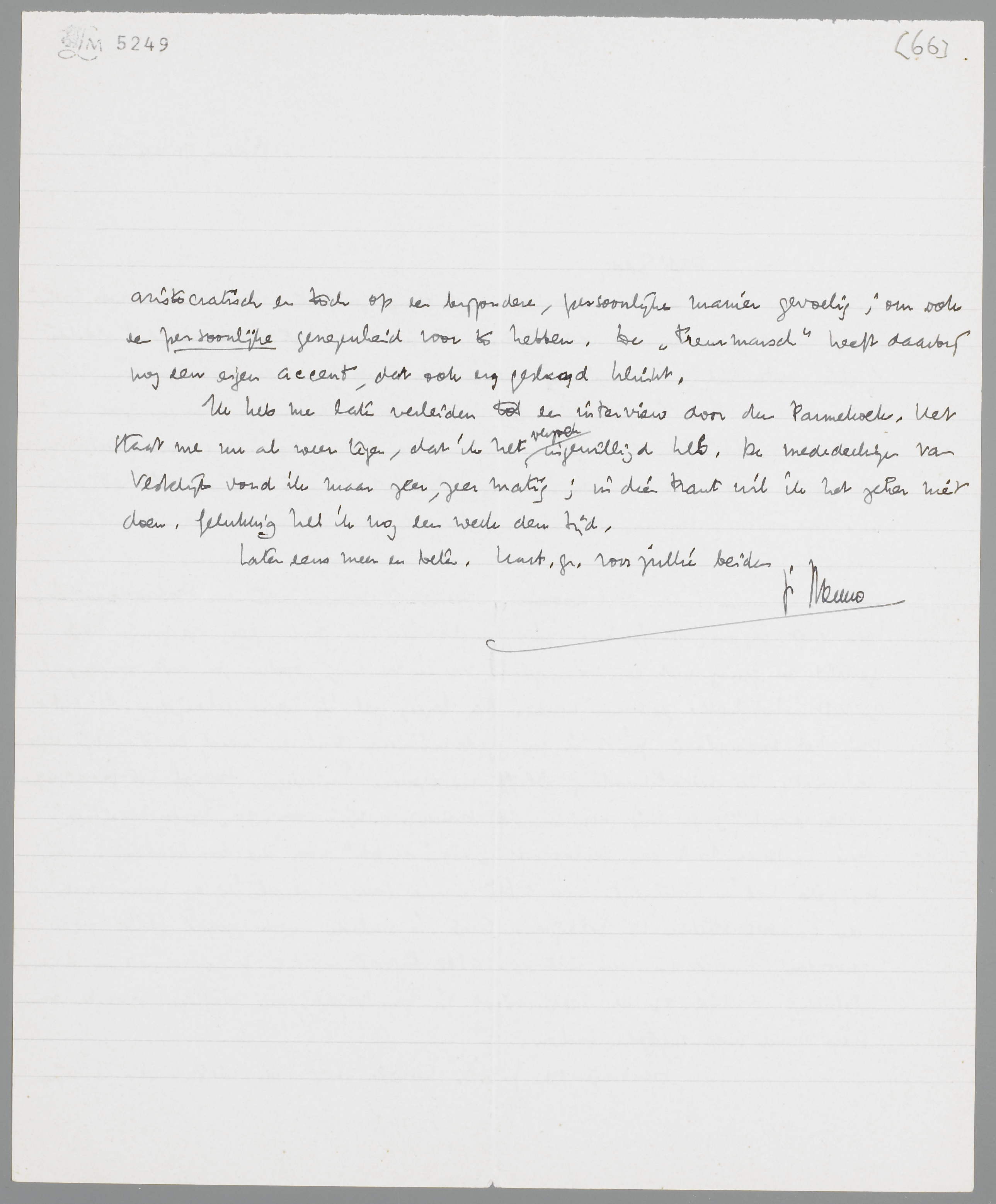 Ik heb me laten verleiden tot een interview door den Pannekoek. Het staat me nu al weer tegen, dat ik het verzoek ingewilligd heb. De mededeelingen van Vestdijk vond ik maar zeer, zeer matig; in dien trant wil ik het zeker niet doen. Gelukkig heb ik nog een week den tijd.