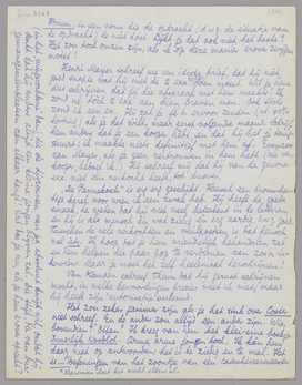 Hierbij tot slot een elucubratie van Maurits Esser = Gerard van Eckeren. Ik had een stukje tegen hem voor D.G.W. geschreven: over zijn vergelijkingen van Dostojevsky en Smeding en van Joh. Fabricius met Le Grand Meaulnes. Hij schreef mij daarop lang en zielig om zich te verklaren, en ik trok mijn stukje terug. Dit is een onverwachte staart over één zinnetje van mij, dat op Raskolnikov sloeg en verder - zie zelf!... (Je mag het document houden als je wilt.)