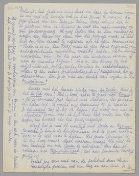 Je bent gelukkiger dan ik, dat je in Tegenonderzoek nog iets goeds vinden kunt. Ik lees alles wat erin staat met een soort walg, een gevoel dat ik er meer dan mijn bekomst van heb om dit alles te ‘weten’, en dat ik er gelukkig een heel eind voorbij ben. Dat is het vervelende van den herdruk van zulke dingen, 3 jaar later. Ik liet ook Binnendijk staan om dezelfde reden: het te laten staan zooals het was. Wel schrapte ik overal zijn titel van ‘heer’. De heele voorgeschiedenis van Forum is in dit boekje vervat, voor wie dat later (voor een dissertatie bv.) zoeken wil. Vanaf het gesprek tot Slauerhoff en mijn eerste stuk over jou, is het deze voorgeschiedenis. In mijn volgende ‘essay-boek’ komen de 2 jaar Forum-activiteit. ‘Historisch’ is het dan altijd nog wel aardig. Maar de eigenlijke ‘cahiers’ zijn toch met deel 1 en 2 opgehouden; ook Tegenonderzoek hoort er nog maar amper bij; en zeker het volgende niet meer.