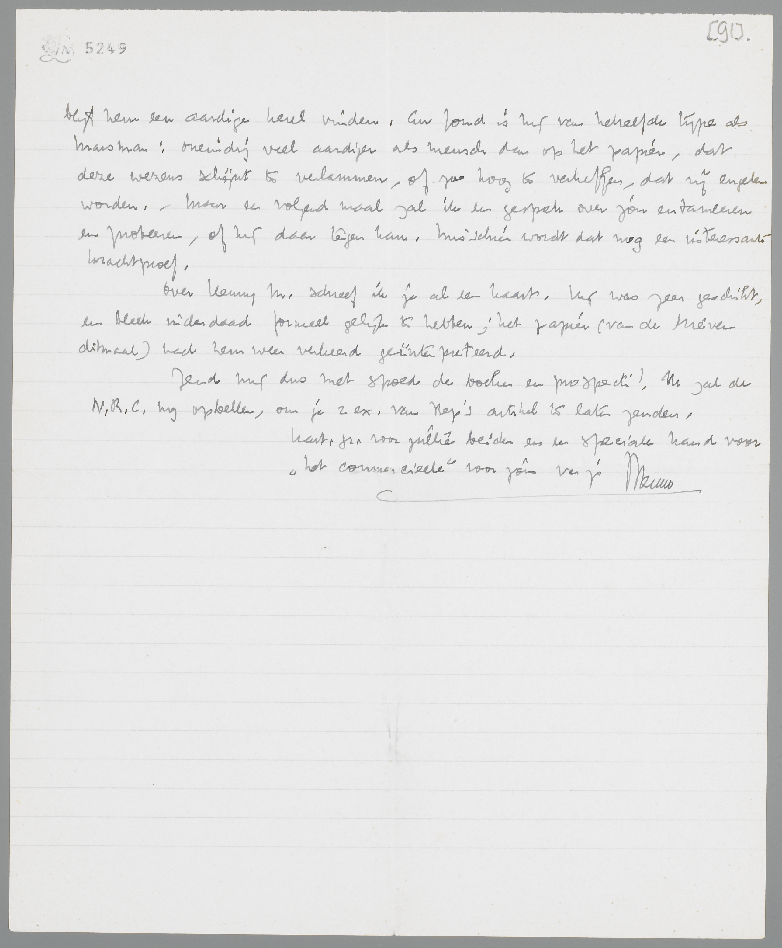 Over Henny M. schreef ik je al een kaart. Hij was zeer geschikt, en bleek inderdaad formeel gelijk te hebben; het papier (van de brieven ditmaal) had hem weer verkeerd geïnterpreteerd.