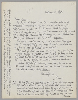 P.S. Ik heb Jan ook geschreven dat als hij Maurice eigenlijk zóo'n rotkanes vindt, hij verder toch maar niet ‘au mieux’ met hem moet zijn. Hij verwijt mij dat ik mijn vrienden ‘afzweer’ (als toen bij de ruzie met Slau over Borel en nu met Vic), hij ‘houdt ze aan’ op deze manier!