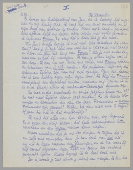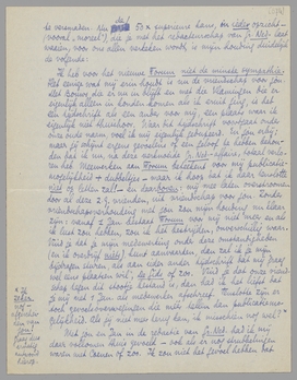 P.S. - Als het nog te doen is en ik je een raad geven mag: neem nu nog Gr. Ned. aan. Met Forum samen desnoods. Het spijt me dat je brief er nog niet is, en ik dit alles dus vooruit schrijven moet, maar iedere post later scheelt een volle dag en ook nu ben ik natuurlijk telkens te laat!