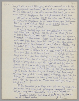 Je brief wordt werkelijk serieus! We gaan langzaam maar zeker het afleggen - omdat het fascisme toch niet te stuiten valt. Met of zonder strijd; maar je hebt gelijk dat je strijden wilt. Alleen: over 1, 2, 3 jaar (?) zijn we allemaal réfugiés; en waar? In Spanje? in Rusland, als er geen ander land meer overblijft? Donker is dan hofpoëet van ir. Mussert, tenzij Bloem hem als zoodanig voor is. Theun, zooals ik je al zei, puzzelt me: 1o. omdat hij immers revolutieboeken wou schrijven, 2o. omdat hij Jef Last opvijzelt. Dit is een andere draai naar het collectivisme, al blijft het voor ons één pot nat. - Helman is en blijft toch een stuk sympathieker, ondanks alles, dan die heeren in Holland; juist omdat hij in Spanje zit. Ik ben geneigd zijn literatuur aan mijn laars te lappen en hemzelf voor stom aan te zien, zooveel je wilt, maar antipathiek is hij mij niet, after all.