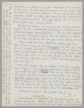 Neem de telegramstijl van deze brief voor lief: ik moet naar een tooneelvoorstelling en heb precies ½ uur. En dit moet weg. Ik liep mee in de communistentroep op de stakingsdag. Te lang en te vervelend om te vertellen. Eén daverend gevoel: je n'en suis pas! Het gaat niet om ‘partijkiezen’ voor mij, [tusschen communisme en fascisme, rechts of links,] dat is duidelijk; maar om me te verdedigen tegen alles wat collectivistische dictatuur is.