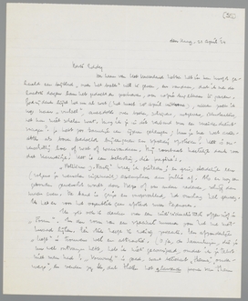Ik zit ook te denken over een individualistisch offensief in Forum. In den vorm van een speciaal nummer zou het me niet kwaad lijken. Eèn stuk heeft te weinig zwaarte. Een afzonderlijk ‘Heft’ is trouwens wel een attractie. (O ja, de Sammlungen, die je nu wel ontvangen hebt, heb ik niet gecorrigeerd, omdat ik je tekst niet meer had! ‘Vorwurf’ is goed, want betekent, ‘thema’, ‘onderwerp’, en verder zag ik, dat Thelen het glanzende proza van Theun onjuist met ‘glänzend’ had vertaald. Het moet zooiets zijn als ‘leuchtend’, denk ik. Inmiddels heeft de ‘leuchtende’ weer een boek geworpen, Koningssage geheeten, pastiche van Jany en v. Schendel samen, vervlochten met de H.B.S.- psychologie van den Sneeker; ik heb het Zondag in Het Vad. besproken als ‘een jongensboek voor groote menschen’.