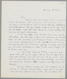 De zaak Smalle Mensch was al aan het rollen gebracht. Ik had Querido voorgesteld, dat een comité van vrienden de uitgave zou ‘garandeeren’, in dien zin, dat wij na een jaar zouden betalen wat er nog ontbrak aan het bedrag, dat de kosten goed zou maken. Hij antwoordde mij nu vanmorgen, dat hij je al een tegenvoorstel had gedaan. Nu je het al hebt aangenomen, kan ons initiatief vervallen, maar gooi er die 70 pag. in geen geval uit; dan hebben wij nog iets om te ‘dekken’. Het boek moet verschijnen, zooals jij het bedoelt en niet in een door Querido afgemeten vorm; dat is je reinste nonsens.