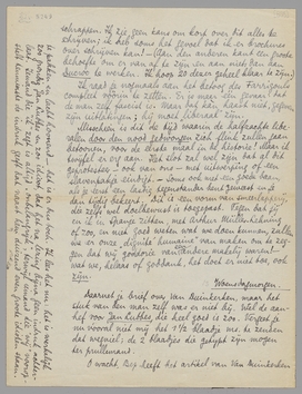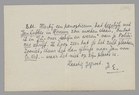 Als je na ontvangst dezes het niet gebruikte blaadje in manuscript (eig. 1½ blaadje) nog niet teruggestuurd hebt, doe het dan omgaand. Ik heb het noodig voor de proporties!