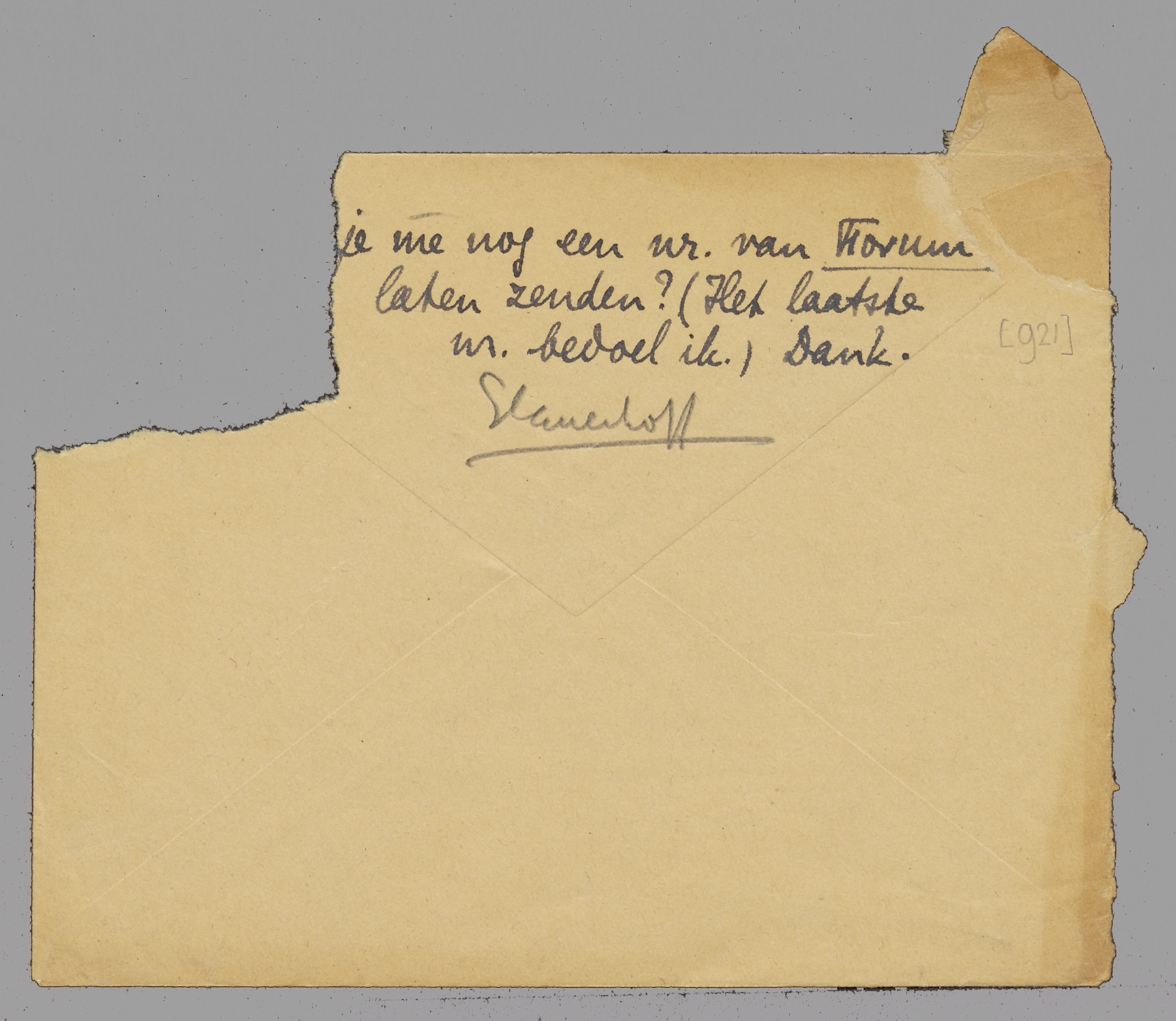 [...] je me nog een nr. van Forum laten zenden? (Het laatste nr. bedoel ik.) Dank.