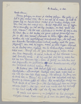De historie van Cola Debrot lijkt mij - ondanks vele onhandigheden - alleraardigst. Vestdijk weer goed, maar toch is dit niet een van zijn beste essays. Vic roerend. En Jany, voor de eerste keer in Forum! hij is al net zoo eclectisch met zijn gunsten op literair gebied als elders. Het aartslullige stukje van Endt kende ik al door Gans (die het heelemaal voor me overgeschreven heeft!) - Dat zoo'n vent niet merkt dat hij zichzelf in zijn hemd zet, bij elke regel die hij van zich afgeeft!