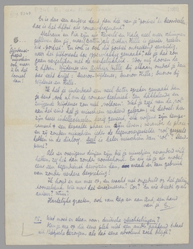 Malraux en Pia zijn als Heverlé en Viala veel meer schimmen gebleven dan jij, maar Batten als Arthur Hille is juister, reëeler als ‘portret’. En toch is ook dit portret ontzettend eenzijdig naar het pittoreske toe oppervlakkig gemaakt [Geïntensifieerd misschien ook, maar à la het tooneel dan!], als je het zou gaan vergelijken met de werkelijkheid. Voor mij hooren de 2 hfdstn. Wijdenes en Arthur Hille bij elkaar, omdat je dan pas echt krijgt: Ducroo-Wijdenes; Ducroo-Hille; Ducroo bij Wijdenes en Hille. Ik heb je inderdaad een veel beter spreker gemaakt dan je bent, ook al om de roman-techniek. Een hakkelende en zwijgende Wijdenes zou niet ‘voldoen.’ Wat je zegt van de ‘rol’ aan het eind heb je misschien verkeerd gelezen; ik bedoel: hier zijn twee intellectueelen bezig geweest elk volgens zijn temperament + een bepaalde phase in zijn leven; verander de phase en zij zouden misschien ieder de tegenovergestelde ‘rol’ gespeeld hebben in de dialoog. Deel is beter misschien dan ‘rol’? Standpunt?