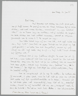 De roman van Blijstra (met wiens schoonheidsverhalen Ant overigens zeer gesticht was) is m.i. weer echt iets à la Blijstra. Het begint niet slecht, maar toch erg gezocht; daarna verloopt alles in tweederangslitteratuur. Het spijt mij voor hem, maar het is zoo absoluut ongeschikt voor ons. Waarom wil hij toch altijd zoo verbijsterend intelligent schrijven, als hij in wezen een constructeur van vlotte Prins-verhalen blijft? Ik zeg niet, dat deze roman alleen maar would-be is, maar de grenzen zijn nooit scherp te trekken bij hem. De eenige oplossing is: jij moet het voor hem bewerken...