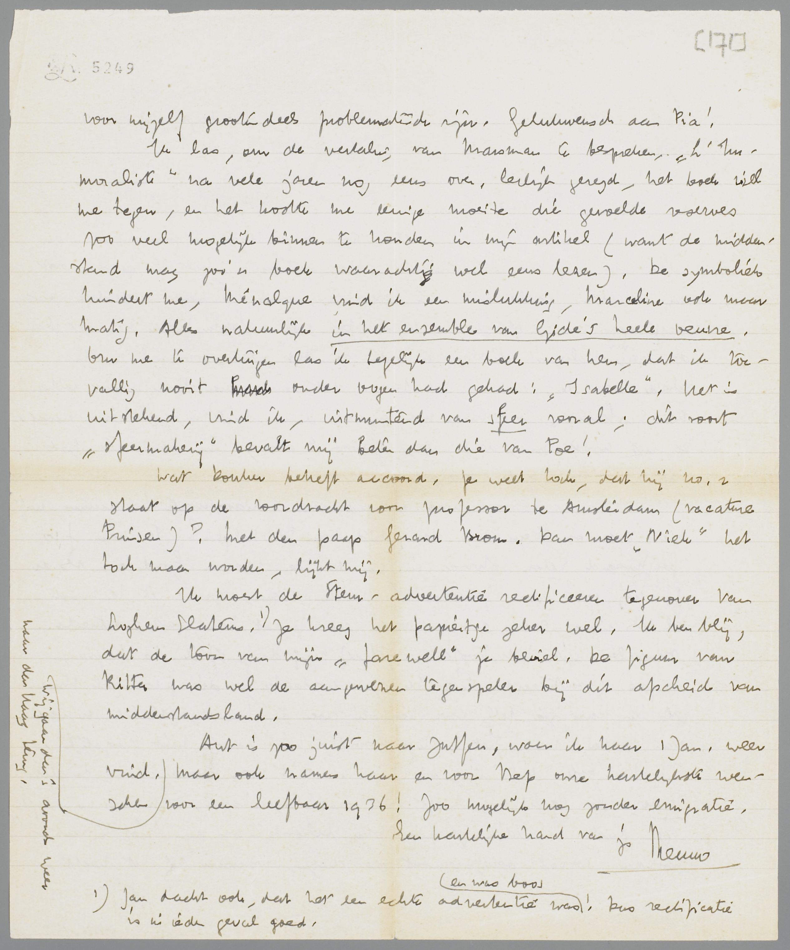 Wat Donker betreft accoord. Je weet toch, dat hij no. 2 staat op de voordracht voor professor te Amsterdam (vacature Prinsen)? Met den paap Gerard Brom. Dan moet ‘Niek’ het toch maar worden, lijkt mij.
