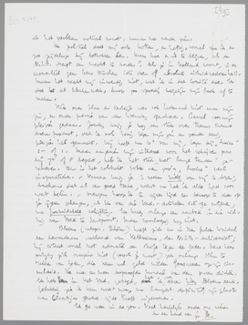 Stuk over Slau en Vestdijk was ook heelemaal niet naar mijn zin, en onder pressie van den Woensdag geschreven. Carrel voor mijn pleizier gedaan. Zondag krijg je nog een stuk over Theuns nieuwe boeren product, dat ik ook hevig tegen mijn zin en zonder eenig pleizier heb gemaakt. Hij heeft nu 6 + van mij, tegen bij Eroïca 2- of 1. Maar aangezien mijn interesse voor het schrijven pas bij 7+ of 8 begint, heb ik het stuk ‘met lange tanden’ geschreven. Dan is het volstrekt rotte van zoo'n Eroïca veel inspiratiever. Daarna krijg je 3 weken niets van mij te lezen; beschouw dat als een goed teeken, want nu heb ik alle tijd voor wat beters. Overigens hoop ik te zijner tijd een beroep te doen op je ijzeren geheugen, als ik van die Vad-artikelen iets ga uitgeven, na formidabele schifting. Ik kreeg onlangs een aanbod in die richting van Mees te Santpoort. Maar voorloopig nog niet.