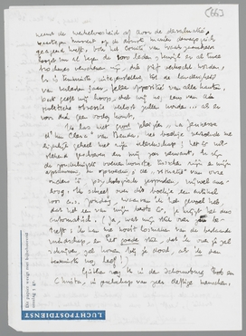 Ik ben bezig mijn boek over te tikken. Natuurlijk kost dat veel tijd, omdat ik er toch weer in zit te veranderen. Je Blocnotes voor Januari heb ik zoo zorgvuldig mogelijk (voor mijn doen) gecorrigeerd. Van mij komt er in het Jan. nummer een artikel over Gide's Retour de l'U.R.S.S. Je hebt toch gehoord, of gelezen, dat hij volkomen bekeerd uit het Stalinparadijs is teruggekomen? Hij vindt het er nog beroerder dan in Duitschland! De evangelische mensch is toch wel een verrukkelijk type. Nu zijn de Stalinisten erg boos, want Gide was altijd een sentimenteele bourgeois, die niets van de dialectische ontwikkeling heeft begrepen.