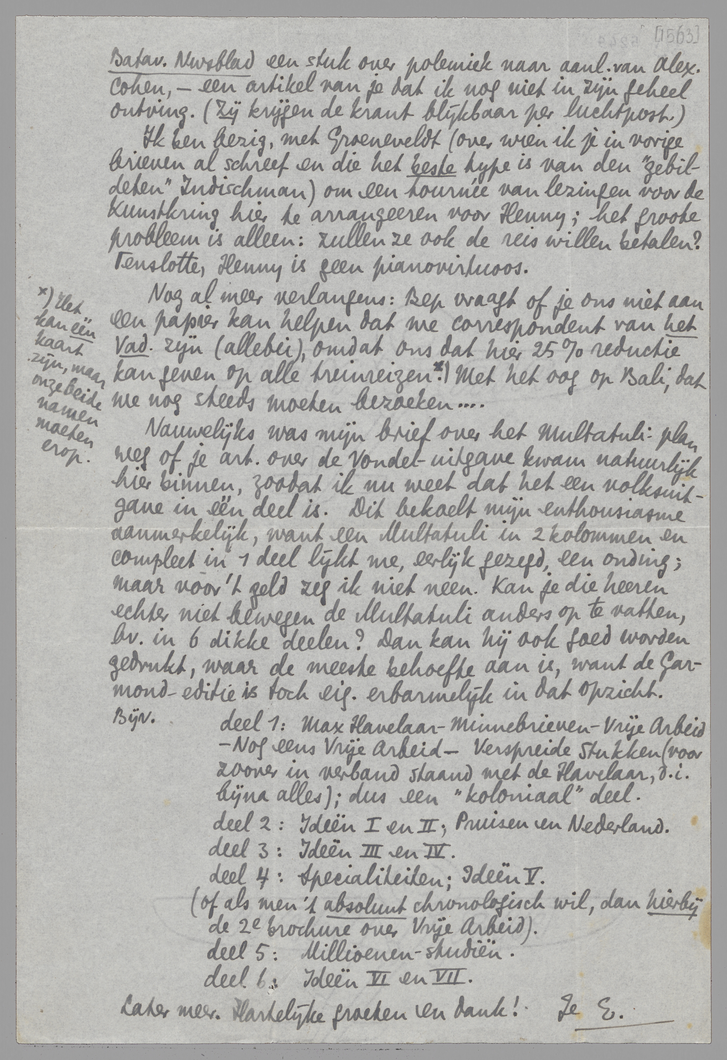 Ik ben bezig, met Groeneveldt (over wien ik je in vorige brieven al schreef en die het beste type is van den ‘gebildeten’ Indischman) om een tournée van lezingen voor de Kunstkring hier te arrangeeren voor Henny; het groote probleem is alleen: zullen ze ook de reis willen betalen? Tenslotte, Henny is geen pianovirtuoos.