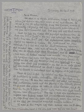 Maar de pest is dit: hij schijnt nu zijn ‘vergunning’ tot publikatie te willen intrekken. Als hij dat doet, is het lollig voor mij! Ik kan dan natuurlijk nog altijd het museum-stuk publiceeren, maar met die gaping is een ellendig gevoel, als je weet dat elders de reddende tekst bestaat, als je die kent en om zoo te zeggen ‘gehad’ hebt, maar weer hebt moeten opgeven voor flauwekul! Voor mij is niet een tekstcritische uitgave van belang, maar het psychologische moment van M., deze brief toen en daar schrijvend; maar dan nog zou ik dit klad zoo compleet mogelijk willen hebben!