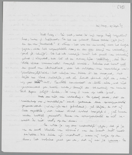 Eén post, nadat ik mijn vorigen brief weggestuurd had, kwam je briefkaart. Ik heb me gehaast Douwes Dekker (p/a jou) een ex. van Multatuli te sturen. Het was me eenvoudig door het hoofd gegaan, onder het wapengekletter door, en dus geen bewijs van verkoeling, zooals je schrijft. Ik heb ook werkelijk nooit het gevoel van verkoeling gehad; integendeel, meer iets als een ondraaglijke verhitting, die tenslotte iedere communicatie onmogelijk maakte. Behalve dat komt wel een gevoel van abstractheid, door het ontbreken van mondelinge verificatiemogelijkheid. Het schrijven van brieven is een surrogaat, dat blijkt me steeds duidelijker, ook al houdt iemands stijl den ‘adem’ nog zoo sterk vast. Tenslotte conserveert de letter alles, wat niet geconserveerd zou moeten worden, terwijl de verandering van nuance toch ergens blijft haken. De vraag is maar op welk punt.