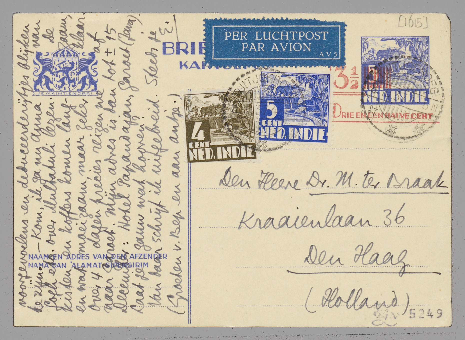 Huberman's telegram aan de Kunst-kring hier was teekenend: ‘Nur leichte Verletzung. Karriere hoffentlich gerettet’. Zóó zie ik deze kunstenaars; het is toch altijd weer prettig als je ziet hoe goed je voorgevoelens en deduceerderijtjes blijken te zijn. - Kom, ik ga nu Anna van Gogh etc. over Multatuli lezen. De kisten en koffers komen langzaam, en wat moeizaam, maar zeker klaar. Over 4 dagen precies reizen we af naar Garoet, mijn adres is dan tot ± 15 December: Hotel Papandajan, Garoet (Java). Laat je gauw wat hooren?