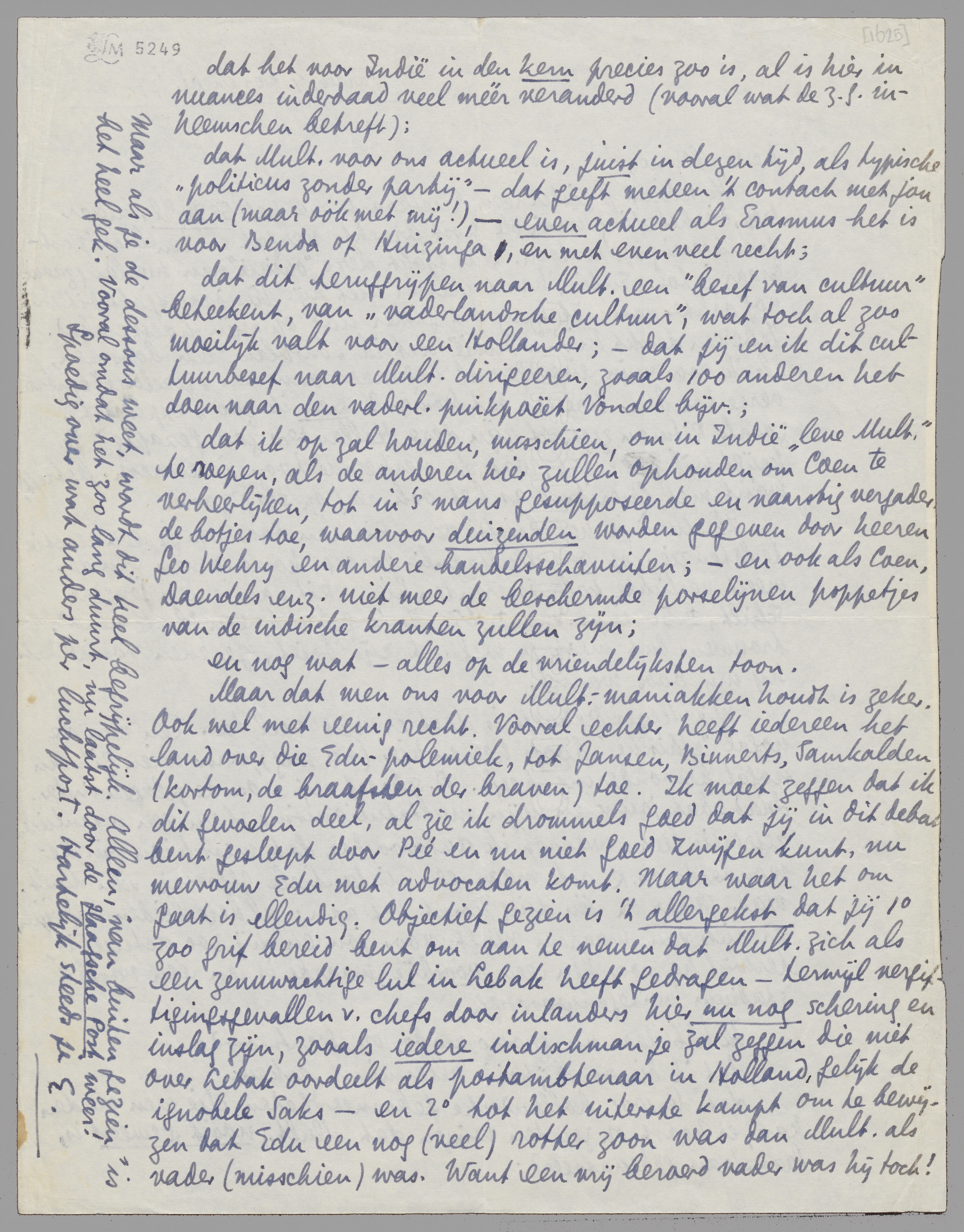 dat Mult. voor ons actueel is, juist in dezen tijd, als typisch ‘politicus zonder partij’ - dat geeft meteen 't contact met jou aan (maar óók met mij!) - even actueel als Erasmus het is voor Benda of Huizinga, en met even veel recht;