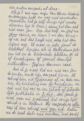 Als je 't ms. van mijn Van Haren-historie ontvangen hebt en nog niet verzonden (misschien heb je zelf eenige tijd noodig alvorens het te lezen) stuur het dan ook niet naar Jan. Lees het zelf, en geef me jouw opinie, en stuur 't me dan terug - of nee, ook dat hoeft niet, stop het dan ergens weg. Ik moet in ieder geval de heeleboel herzien als ik Halbertsma gelezen heb en de historische plekken ga ik òf herschrijven òf zooveel doenlijk uitkrabben. Geef me daarover raad.
