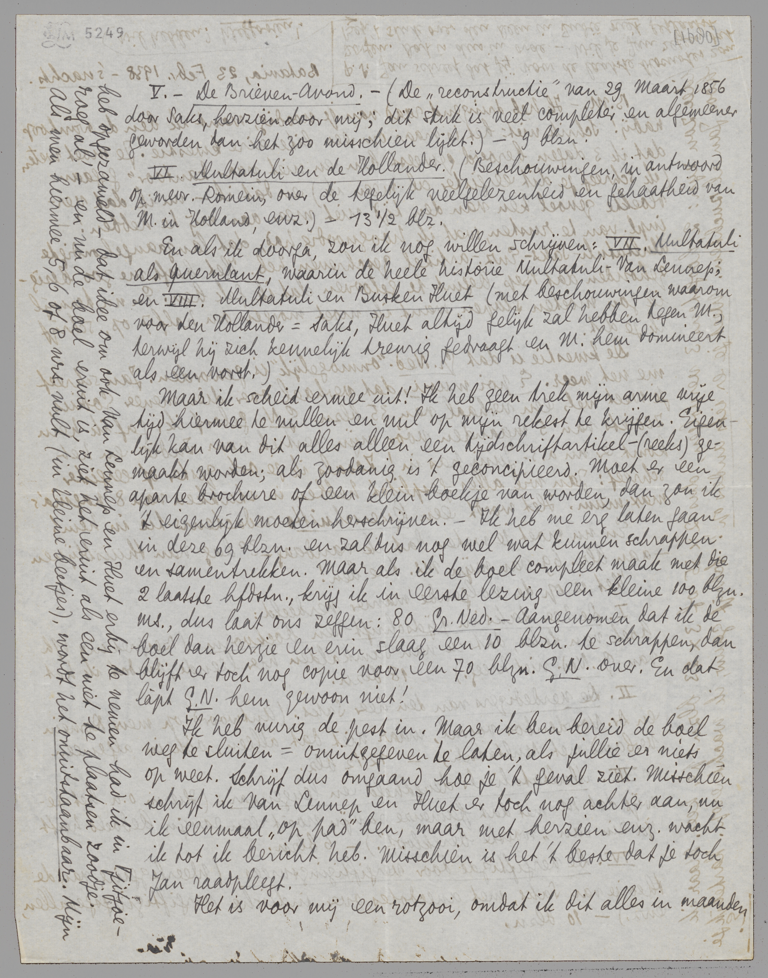 | V. | De Brieven-Avond. - (De ‘reconstructie’ van 29 Maart 1856 door Saks, herzien door mij; dit stuk is veel completer en algemeener geworden dan het zoo misschien lijkt.) - 9 blzn. |