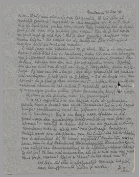 Er is op 't oogenblik hier een razzia onder de pederasten gaande, waar je beroerd van wordt. Arrestaties tot in ‘de hoogste kringen’ (ambtenaren) en al één zelfmoord (een onderwijzer hier in Bandoeng). Het is een beetje naar, ofschoon in dit geval - meer dan gewetenlooze kinderverleiding met foto's en adressen! - moeilijk te laken. Dit is nu die gezonde indische samenleving onder de ‘sterke zon’ van Zentgraaff. Overigens: Vestdijk wordt door die ploerten van Het Licht (dat N.S.B.-blaadje) voor de actualiteit bij de homo's ingedeeld! Want... zijn werken komen voor in het Nederlandsch Wetenschappelijk Humanitair Komitee (voor vrijheid van homosexueelen) in de afdeeling ‘schoone letteren’. Is dat zoo? Ik kan niet antwoorden, als ik er niet meer van weet. Want zoo ja, waarom? Wat is er ‘homo’ in het werk van V.?