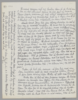 Wil je me die 2 boeken zenden die ik op mijn kaart van vanmorgen vroeg: Saturnus en Van Wessem Sl. Herinn. Ik moet de zaak nu precies voor me zien - ook in details - vóór ik L. ontmoet. Toen ik je mijn eerste brief schreef had ik nog niets dan mijn geheugen geconsulteerd, maar helaas gaven de 2 drukken van Archipel en wat ik verder bij Jany vond dat pijnlijk en overvloedig gelijk. Maar de ordening van Saturnus is een kapitaal punt in dit debat!