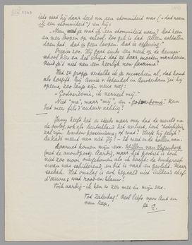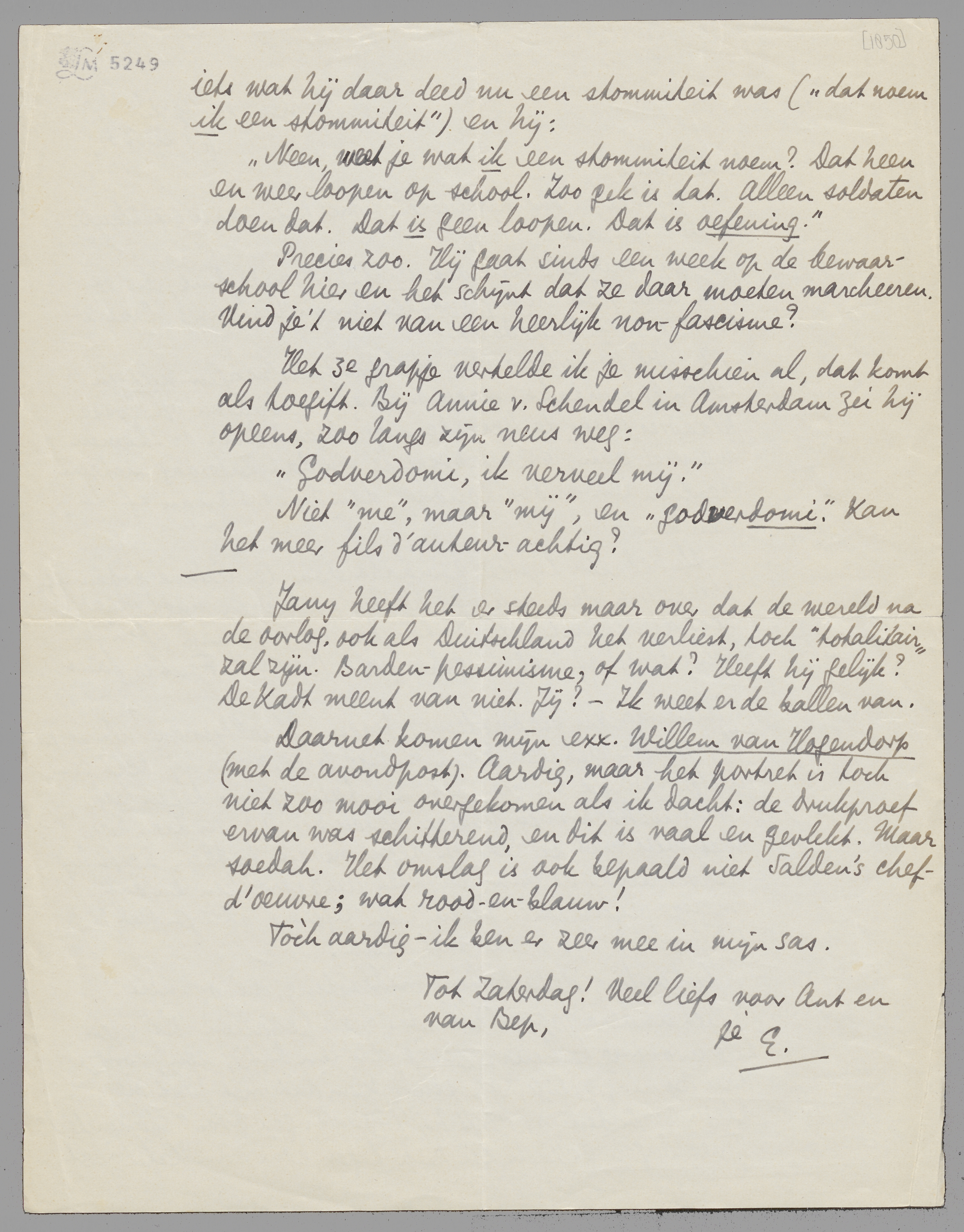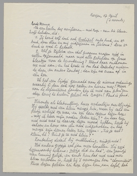 Het andere grapje zal jou meer bevallen. Hij zegt tegenwoordig telkens: ‘vieze dit en dat’, een zoontje van Buning gelijk, en sinds hem dat met wat meer klem verboden is, heeft hij 't vervangen door ‘stommiteit’. Twee dagen geleden zei Bep tegen hem, aan tafel, dat iets wat hij daar deed nu een stommiteit was (‘dat noem ik een stommiteit’) en hij: