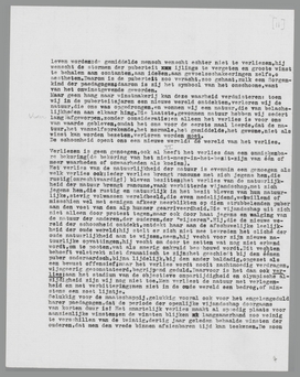 Wie van de daktuin van een restaurant (want laten wij het beeld van den toren in dezen vermijden, het herinnert te zeer aan den vermaarden ivoren uitzonderingstoren der aestheten!) uitziet over een stad, ziet honderden architecturen; monsterlijke architecturen, aesthetische architecturen vol Bauhaus-problemen, compromis-architecturen. Hij ziet ze, hij onderscheidt ze; maar door het daktuinstandpunt, dat hij inneemt, ondergaat hij ze niet meer als aesthetische (subs. onaesthetische) problemen en oplossingen; voor hem zijn de menschelijke scheppingen, de schoone en de leelijke, teruggezonken in het geheel der stad, dat alle details heeft opgeslorpt. En het treft hem, dat op dit geheel, dit door menschenhanden gemaakte geheel, zijn begrippen van schoon en leelijk reeds niet meer volledig van toepassing zijn; het is al in zekeren zin een vegetatie der aarde geworden, het is hersteld in zijn ‘natuurlijken’ staat. Het vliegtuig-standpunt vervolledigt dien indruk; het drukt de menschelijke vormen terug tot uitslag, tot een merkwaardigen schimmel van den ‘natuurlijken’ bodem.
