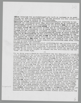 en ergeren. Nooit immers vloeit de intentie geleidelijk en harmonisch in den vorm over; er is altijd de kloof tusschen beide, de scheiding tusschen de schoone troebelheid van het voorstadium en de moeizame nuchterheid van het ‘scheppen’. Heeft God de wereld ook op zulk een krukkige manier geschapen? Is het wellicht te wijten aan deze moeizame strijd tusschen intentie en vorm, dat het Kwaad aan God's verheven aandacht ontsnapte, is het Kwaad soms God's puberteitsverschijnsel geweest?... Hoe het zij, mr. X., die zich hoogstens een God in het diepst van zijn gedachten waant, en er dus niet aan denken zal omtrent God een puberteits-mythologie te gaan fantaseeren, ontdekt in den vorm iets stugs, iets vijandigs; hij ontdekt in den vorm een verwantschap met de logheid en onhandelbaarheid van de gearriveerde ouderen, die hem tot verzet, tot scheppen prikkelde. Dit is een smartelijke ervaring, die men wel kan wegduwen, maar niet ongedaan maken, de ervaring, dat de vorm zich niet gewillig geeft, zich als het ware partijganger toont van het oudere geslacht, zich verweert tegen onstuimigheid en goede bedoelingen. Uit deze ervaring ontstaat de gespannen, de overspannen verhouding tot den vorm; uit deze oervijandschap der puberteitsjaren slechts is de pathetische vereering te verklaren, waarmee de aestheten later den eenmaal getemden vorm aanbidden.